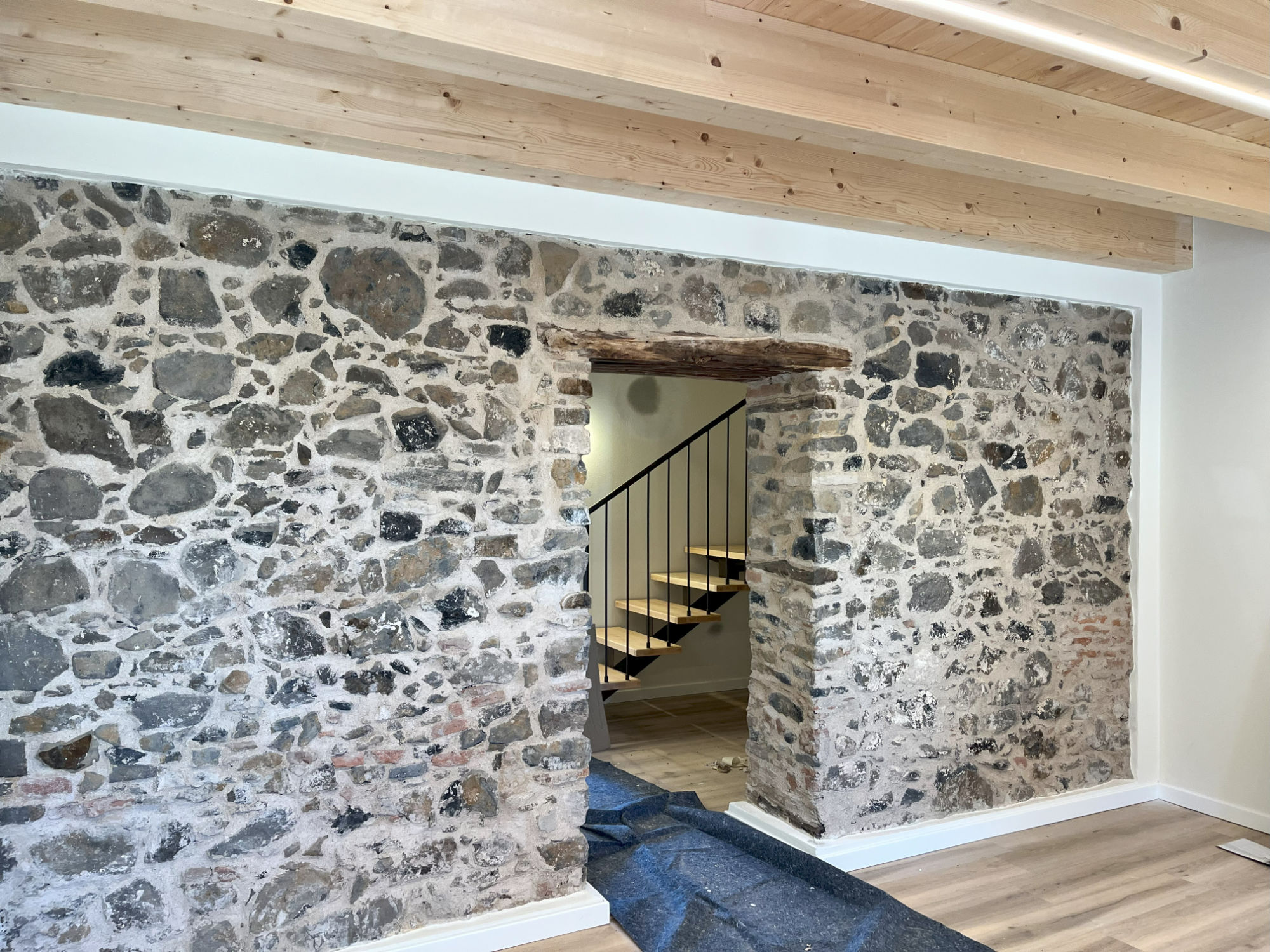 Ristrutturazione edificio su contrada in area collinare. Rifacimento solai, recupero muri in sasso esistenti, nuova scala e rifacimento impianti.